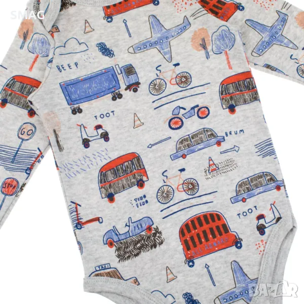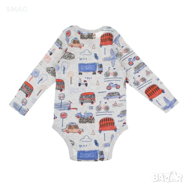 Боди, памучно, в цвят меланж сив с шарка на кола, с дълъг ръкав и отвор в долната част.
