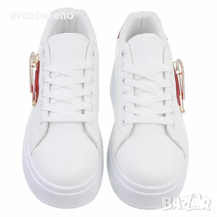 Тези модерни кецове впечатляват с уникален дизайн и висок комфорт при носене. Повдигнатата подметка осигурява приятно омекотяване и гарантира комфортно изживяване при ходене през целия ден. Класическата връзка позволява индивидуално регулиране и здраво захващане. Декоративен детайл придава на обувката специален щрих и я прави наистина привличаща вниманието. Здравата изработка гарантира дълготрайност, а меката вътрешна подплата осигурява удобно прилягане. Тези маратонки са идеални за свободното време, ежедневно носене или специални поводи и предлагат отлично съотношение цена/качество.