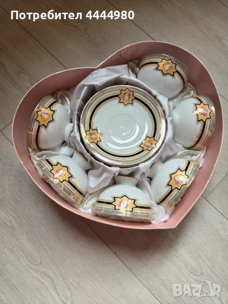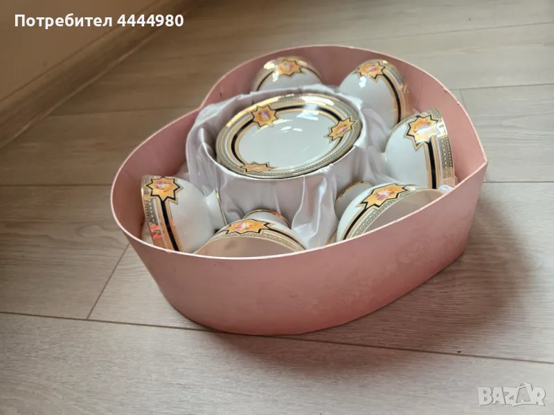 Сервиз/комплект от 6 чаши с чинийки за кафе или чай от слонова кост, страшно леки, изключително удобни подходящи за подарък. Изпращам ги с кутия под формата на сърце