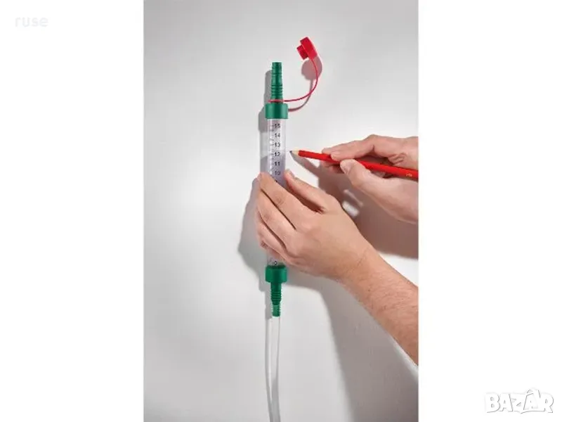 - Съдържание: 1 пластмасов шлаух 15 метра (прозрачен) и 2 пластмасови тръби с мерителна скала
