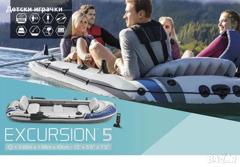 Надуваема лодка Excursion 5 Intex 366 x 168см, PVC, за 5 души, с гребла