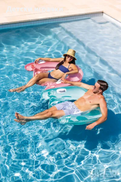 Потопете се в лятото с надуваемия шезлонг Sit ‘N Float от Crocoland! С размери 152 х 99 см и уникален дизайн в ярки цветове, той предлага комфорт и стил на плажа или в басейна.