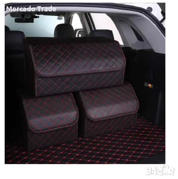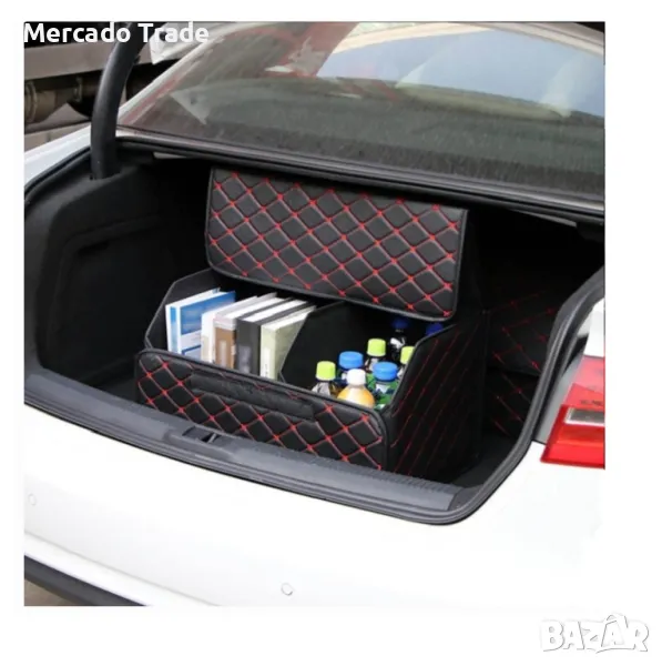Стилен кожен органайзер за багажник с червен шев 55x30x30см.