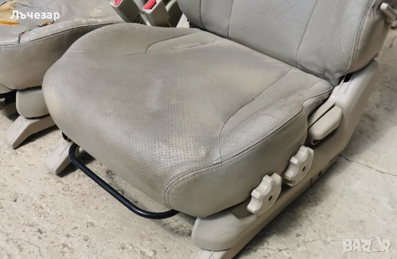Имам излишен бежов кожен салон от Hyundai Tucson 2006. Имах намерение да го поправям при тапицер, с който се бахме разбрали да използва материала от комплект запазени задни седалки за поправка на предните, но междувременно си намерих нов салон и този ми остана излишен. Състоянието е видно от снимките - има доста части за подмяна, както и доста здрави. Намира се във Варна (Аксаково), като предпочитам да се види и вземе на място. Ако някой се интересува, може да ми пише за да се разберем - цената ще е символична.
