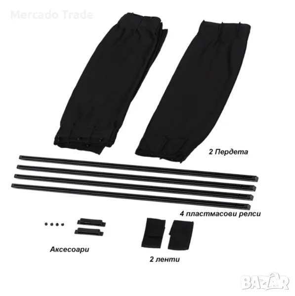 Комплект пердета за автомобил Mercado Trade, Странични завеси, 2 бря, Черен