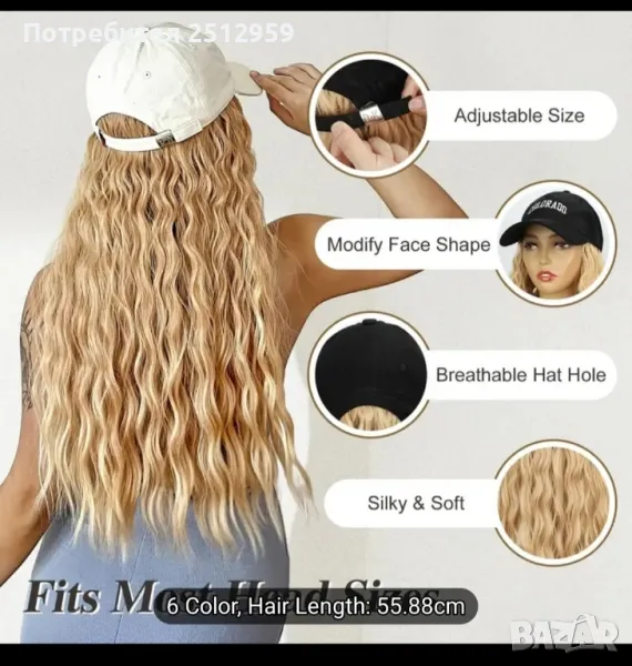 Шапка с рус екстеншън, снимка 1 - Шапки - 49900405 Шапка с рус екстеншън, снимка 2 - Шапки - 49900405 1/2