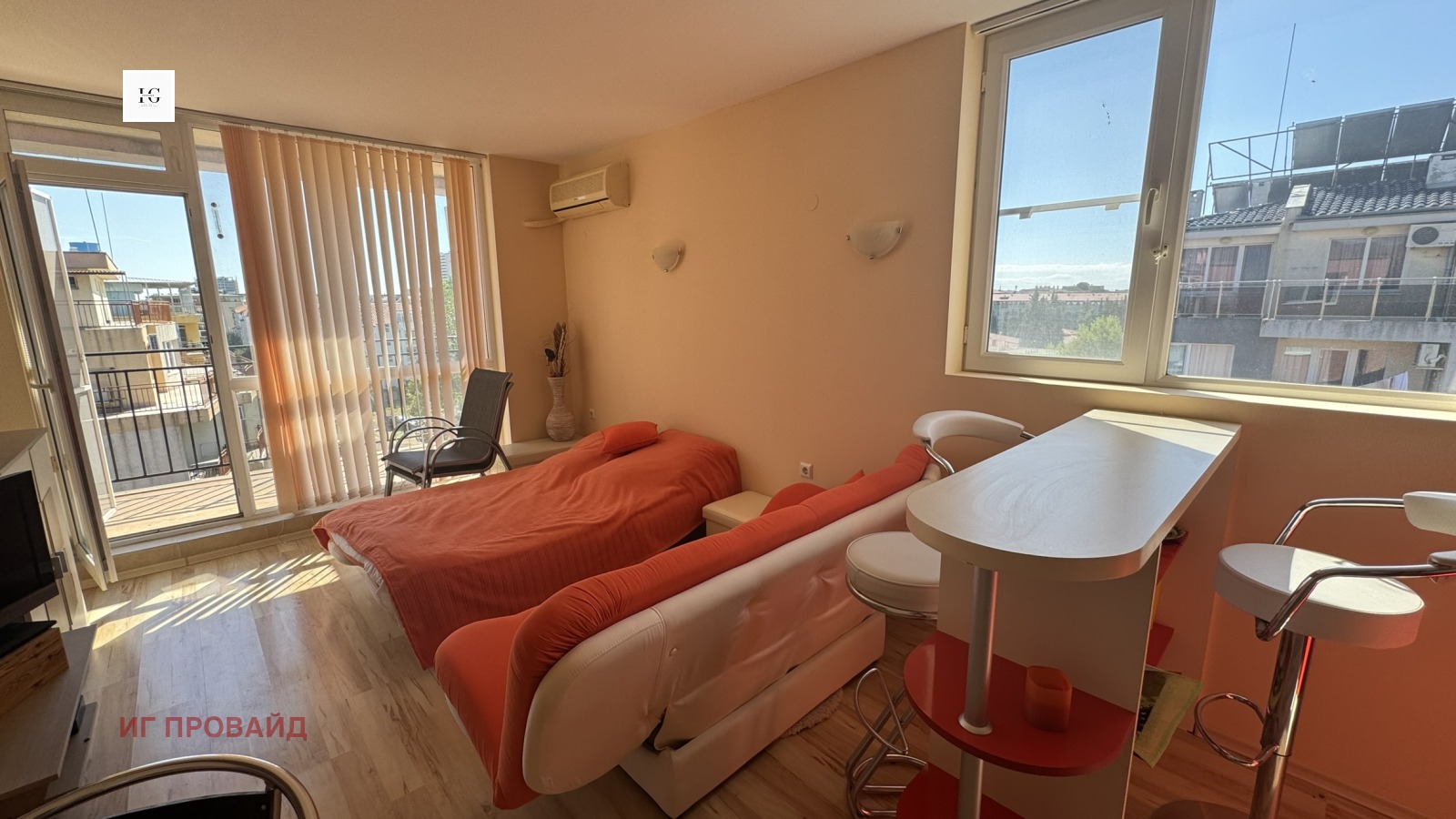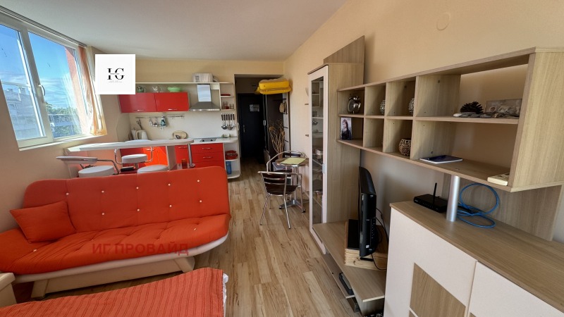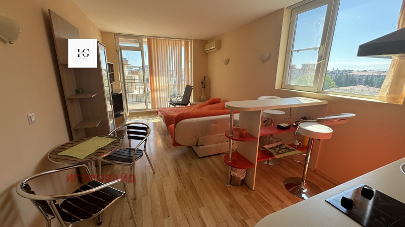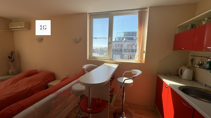Имот с отлична локация и потенциал! Предлага се уютно студио, разположено на последния - 6-ти етаж на сграда с асансьор, част от поддържан комплекс в Слънчев Бряг. Сградата разполага с Акт 16, имотът е с индивидуални партиди и битови токови тарифи.