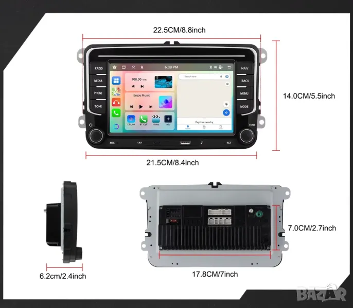 2GB+64GB цена 299.90лв, 4-ядрен процесор, Android Auto, CarPlay, Wi-Fi, RDS, AHD камера