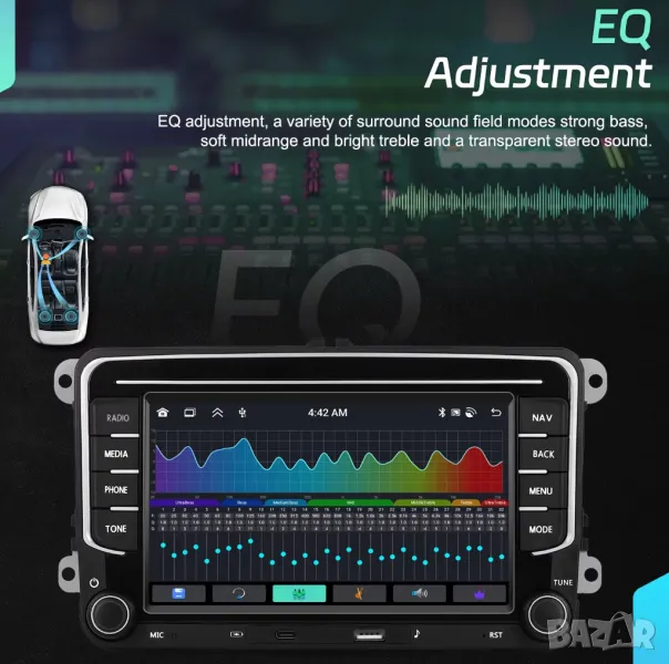 Wi-Fi интернет, новият Андроид, Bluetooth за разговори и музика, USB входове за флашка и зареждане на устройства, GPS навигация, теми за вид на меню, еквалайзер за настройка на звука, бърза реална RAM памет от ново поколение. ТОП дизайн!