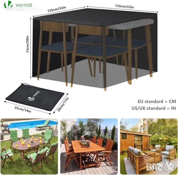 VOUNOT Покривало за градински мебели, здраво, водоустойчиво, 135x135x73 см