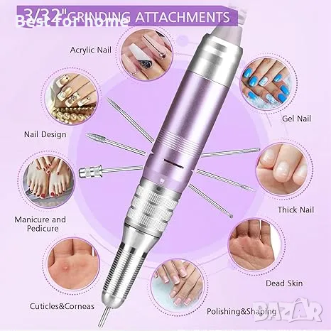 Гъвкава и лесна за използване: Въпреки че е на професионално ниво, преносимата бормашина за нокти е много лесна за начинаещи; Бормашината за акрилни нокти HoMove се предлага с 6 броя различни свредла за широка употреба, многофункционални за лесно шлайфане, изрязване, рязане, полиране, премахване на мъртва кожа, премахване на гел лак и кожички както за акрилни, така и за естествени нокти.