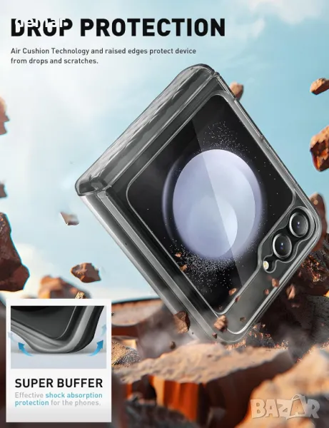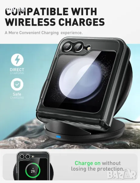 Калъф за Galaxy Z Flip 6/5, съвместим с безжични зарядни устройства, с вграден протектор за екран, защита на пантата, повдигнати ръбове за безопасност на екрана и камерата, прецизни отвори и удароустойчив TPU за защита при падане от 3 метра.