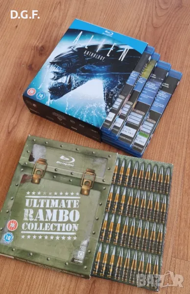 Филмите са като нови. Всички са без български субтитри. Матрицата трилогия: 80 лв.Ultimate Rambo collection: 120 лв.Пришълецът антология: 80 лв.