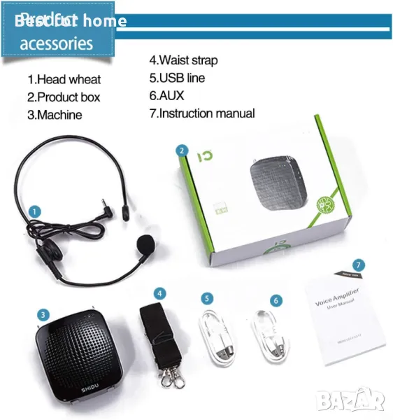 Лек и многофункционален: Преносимата PA система е лека за носене, може да се закачи за колан или да се окачи на врата с помощта на предоставената каишка за врат. Преносимият микрофон е лек и не се плъзга от главата. Добре е, че безжичните микрофони се предлагат в две части, може да се използва и като ръчен микрофон, ако някой иска да го използва по този начин. Слушалките се разглобяват много лесно за съхранение.