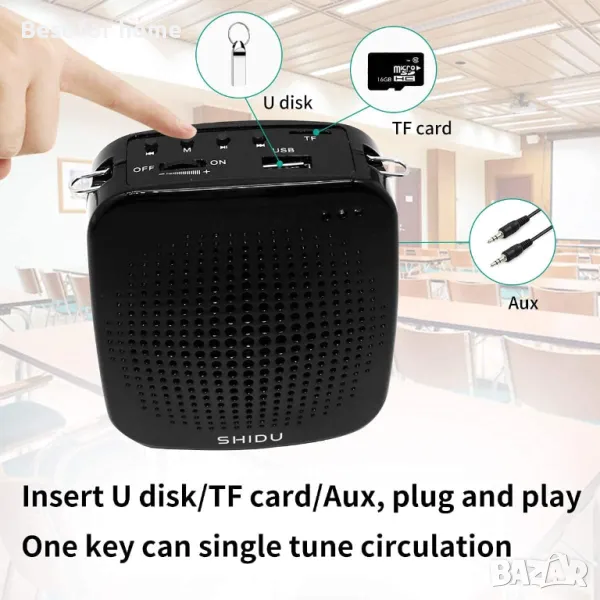 Учителят трябва да има: WB002 Bluetooth гласов усилвател може да бъде обмислен и практичен подарък за учител, който често говори пред големи групи или класни стаи. 15 W мощен изход може да покрие 10 000 sq.ft, любезно препоръчайте използването на тази преносима микрофонна високоговорителна система със слушалки на закрито, като класна стая, тя е доста силна, за да ви чуе клас от около 50 средношколци.