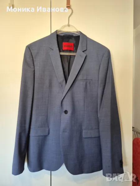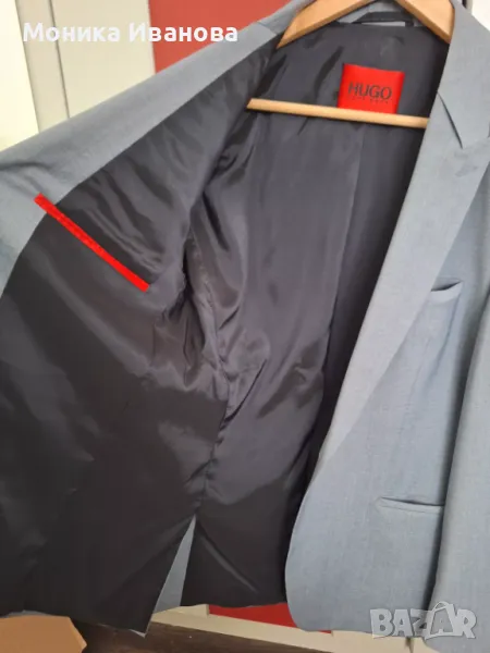 HUGO BOSS, мъжки костюм, размер: EU 54/US XL, цвят - светло син, плат - 100% вълна, малко обличан - в отлично състояние, модел 2025. Изпращам до офис на Еконт - доставката ще струва около 8 лв.