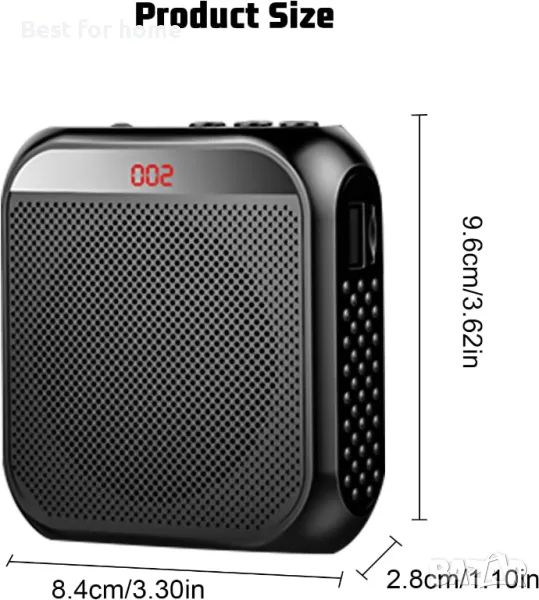 [Многофункционален]: Този гласов усилвател, оборудван с USB, micro SD и 3,5 mm жак, може да се използва като високоговорител, да поставите USB памет или microSD карта или да се свържете към 3,5 mm стерео жак на смартфон, поддържа възпроизвеждане на музика.