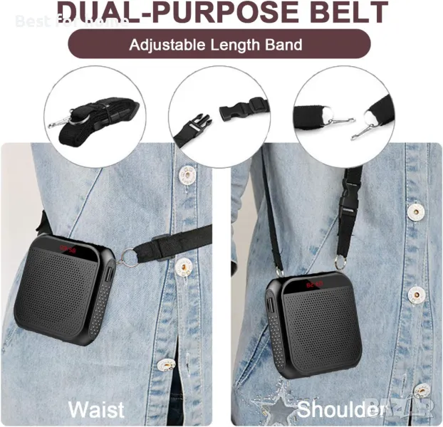 [Лек и лесен за използване]: Можете да използвате задната подвижна скоба, за да го фиксирате на колана или джоба си, или можете също да го завържете около кръста си или да го закачите на врата си с помощта на колана, много лесен за носене. Кабелният микрофон за глава е регулируем. Можете да регулирате разстоянието между устата и микрофона.