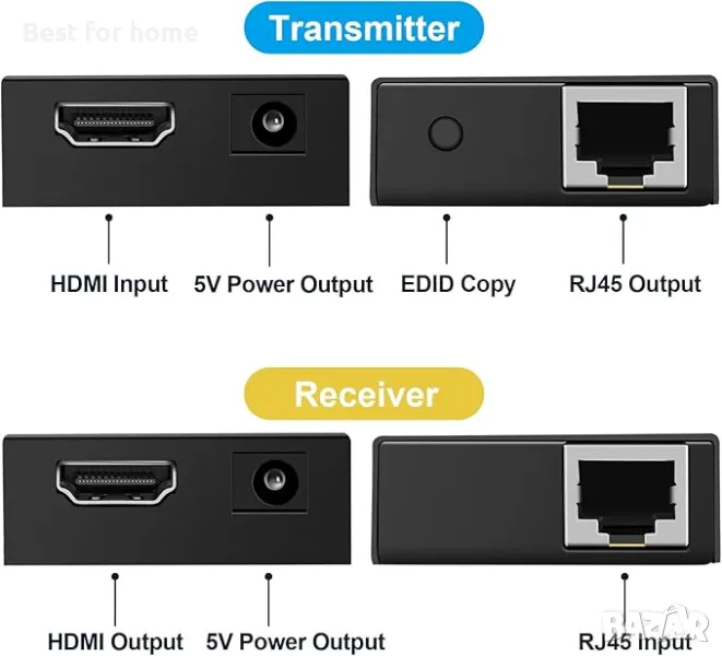 HDMI удължителят може едновременно да предава видео и аудио с висока разделителна способност през меден CAT6 LAN кабел, до 200 фута, без забавяне, аудио и видео синхронизация, на открито или на закрито, Добър избор за проекти и видео конференции.