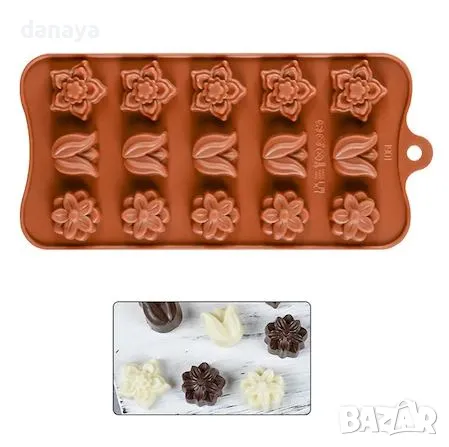 Силиконовата тавичка е за 15 бонбона във форма на цветя.