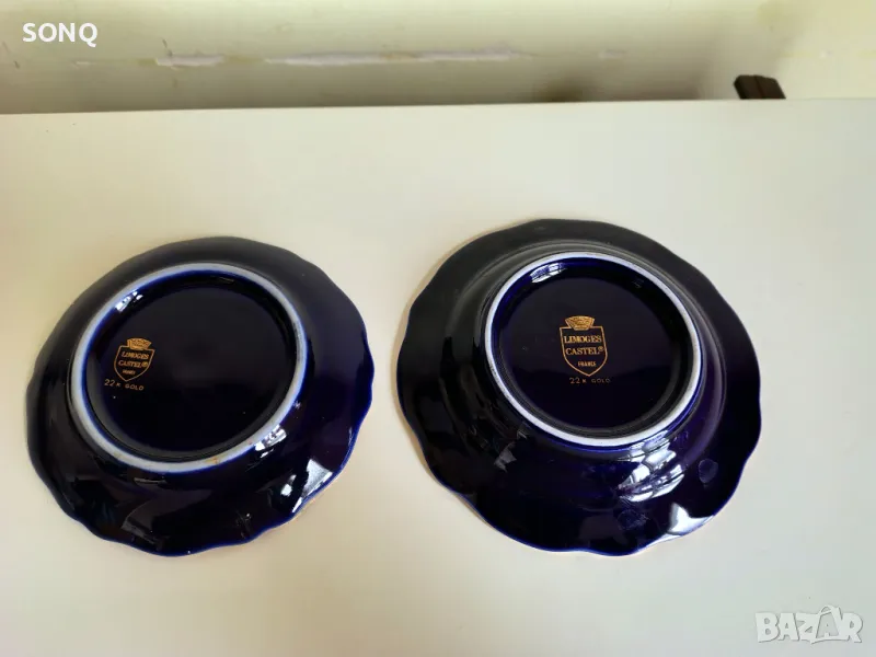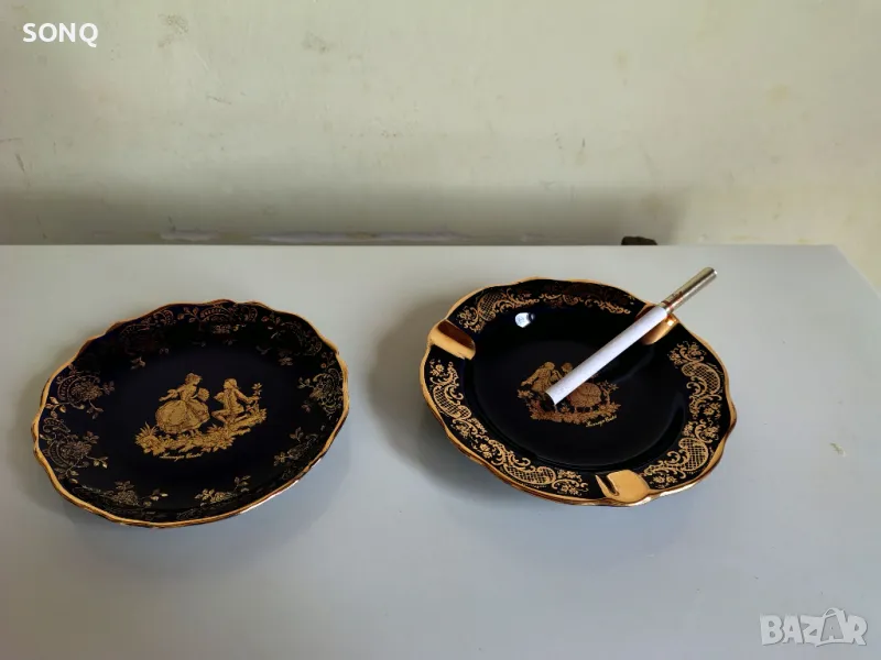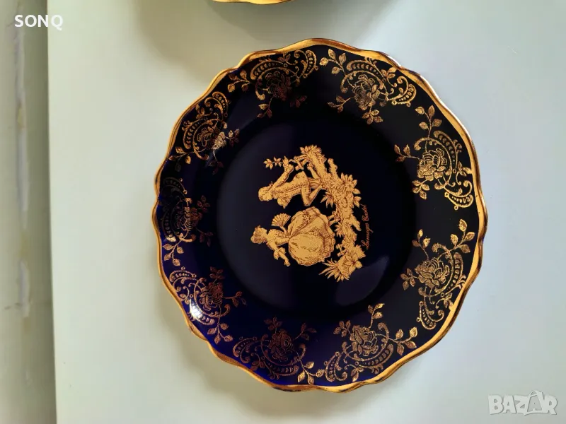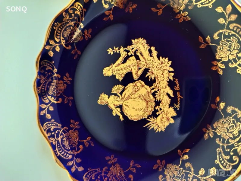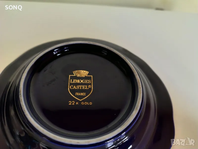 Много красива изработка на известната Френска марка за порцелан-Лимож.Позлатен 22 Карата-маркирано. Само за ценители и колекционери.