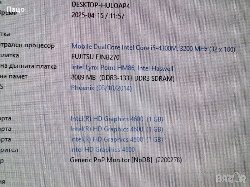 Батерията е 58 процента износване,има снимки/работа над 1 час/Клавиатура/е Бонус/Неговата не работи/Липсва капачето за Рама,има снимки/Затова е и такава Цената му/С опция преглед и тест е//Цената е Твърда/Символична/