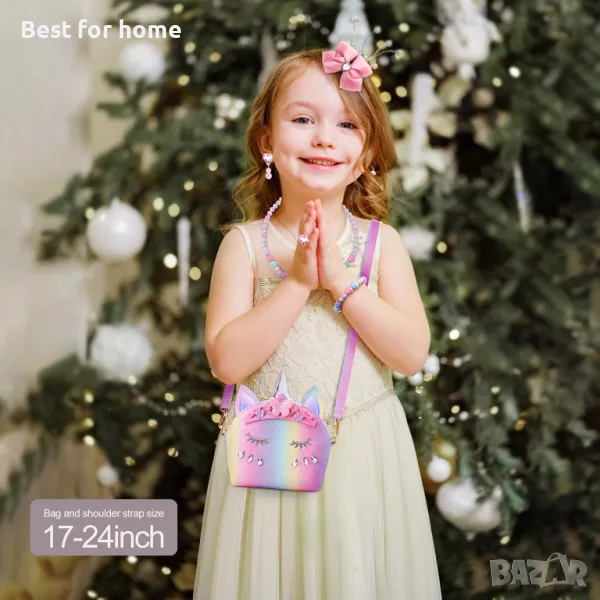 Комплект от детска чанта, портфейл и бижута за момичета-еднорог JYPS