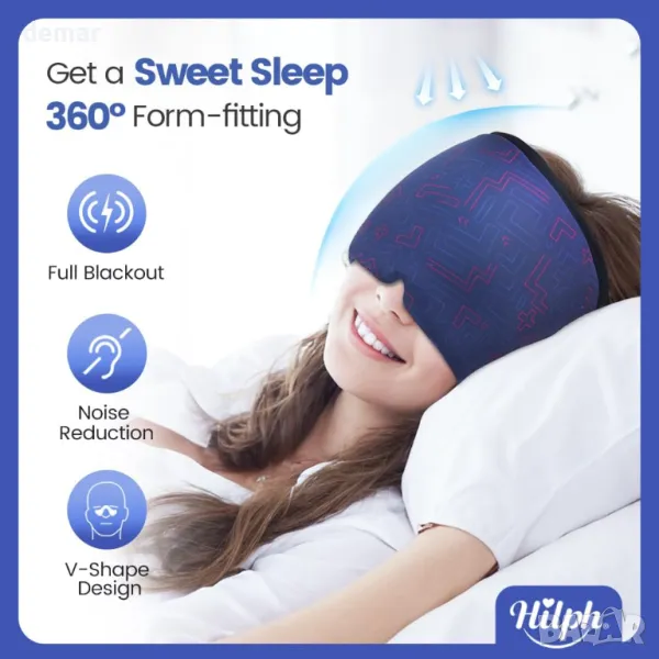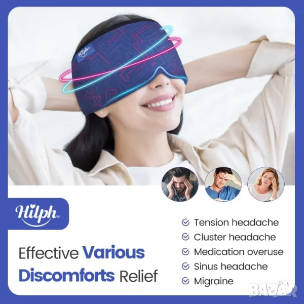 Hilph Регулируема маска за облекчаване на мигрена и главоболие, синя
