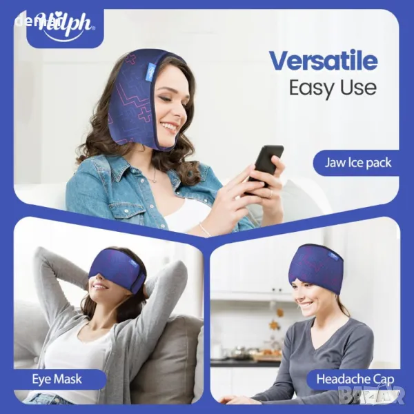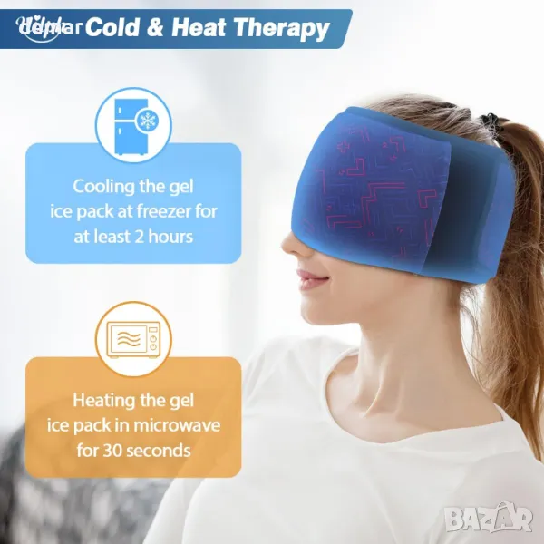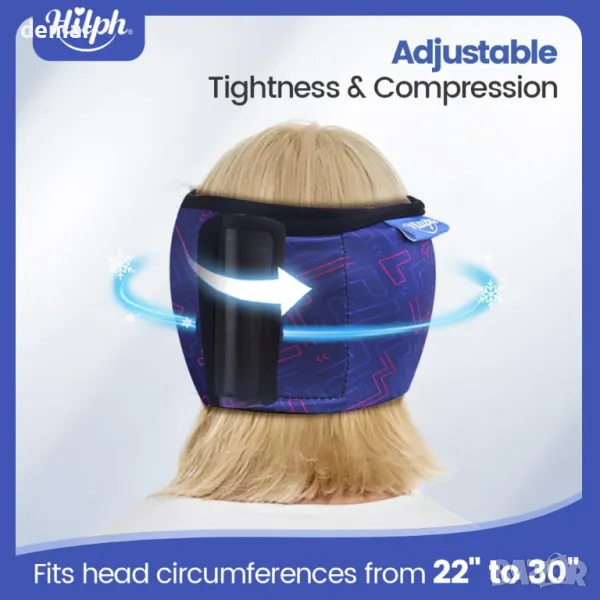 Проектирана за ефективно облекчаване на главоболие и мигрена, тази ледена обвивка за глава е с 3D прилягане, което е подходящо за повечето форми на главите на възрастните, с отвор за носа за по-лесно дишане и покритие над очите, за да блокира светлината. 360-градусовият дизайн на обвивката включва регулируемо велкро за плътно, персонализирано прилягане без сковаността на замръзналия гел. Удължената дължина предлага по-голямо покритие и може да се използва и върху други области на тялото, като челюстта, краката или ръцете. Тя осигурява както студена, така и топла терапия, комбинирайки криотерапия и компресия за облекчаване на болката, отока и напрежението. Използването без ръце я прави удобна, докато си почивате или извършвате леки дейности.