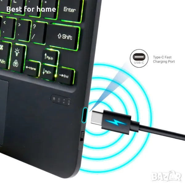 Универсална мини Bluetooth клавиатура 7 цвята подсветка Изключително тънка и лека вградена акумулаторна батерия Съвместима с iOS/Android/Windows микро порт за зареждане