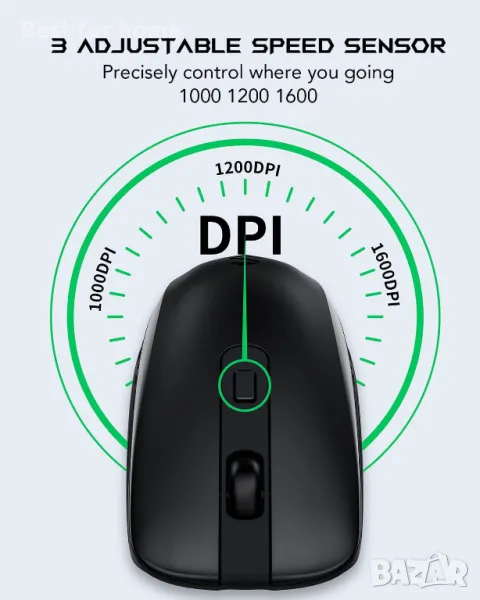 Сензорна мишка с три скорости за лаптоп: Регулируеми нива на DPI между 1000, 1200 и 1600 за задоволяване на различни нужди и позволява прецизен контрол на това къде отивате. На тази безжична мишка има бутон за промяна на DPI, който се регулира лесно. Честотата на запитване от 250 Hz предотвратява закъснения и няма скокове по време на работни задачи или игри.