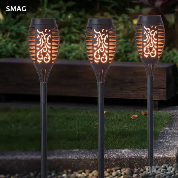 Соларен фенер соларна лампа LED фенер с ефект на пламък, черен, 49 см S_1188499 → Обява 49905125