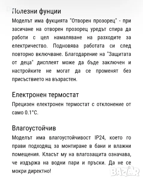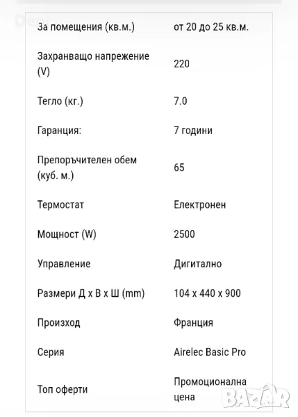 Това че го продавам не означава че не ми харесва. Напротив, уреда е много добър. Работи на принципа на климатика. Има си термостат и потдържа зададената му температура. Безшумен, бързо грее.