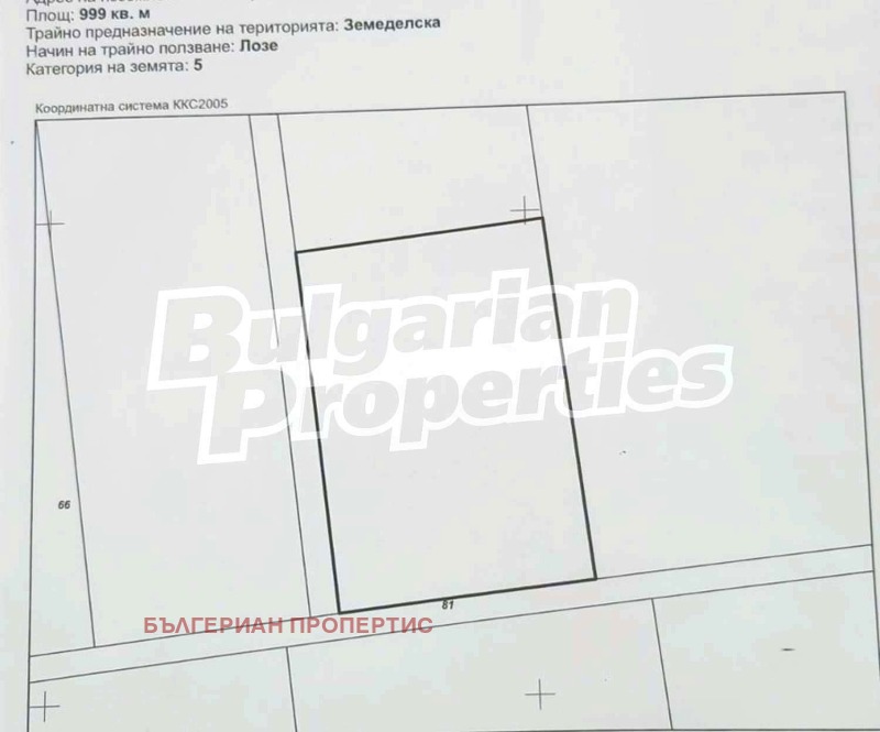 В продажба лозе в землището на град Бяла, област Варна. Парцелът е с правилна форма и е в близост до пътя Горица-Бяла. Обработва се към момента. Градът е разположен южно от Варна на 50 км. и е населен целогодишно. Разполага с детска градина, училище със закрит басейн, стадион за международни срещи, поликлиника, бърза помощ, полиция, кметство.