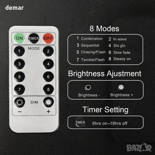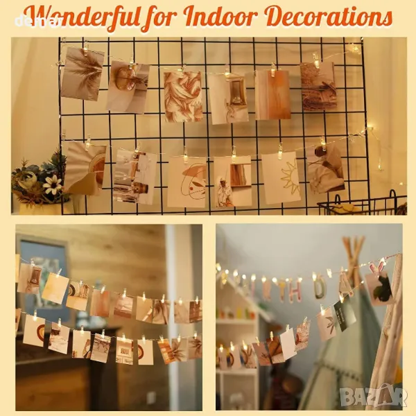 Този комплект включва две гирлянди с дължина 12 метра, захранвани от USB, със 120 ярки светодиода всеки и 40 отделни щипки за показване на снимки, картички или занаяти на предпочитаното от вас разстояние. Гъвкавата медна тел е лесна за оформяне около мебели, растения или декорации както на закрито, така и на открито. С 8 режима на осветление, регулируема яркост с 8 нива, функция таймер (6 часа включено, 18 изключено) и дистанционно управление с обхват 7 метра, тези лампи са универсални за създаване на уютна или празнична атмосфера във всяко пространство.