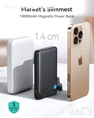 Нова Магнитна Външна Батерия 10000mAh Qi2 INIU – Бързо Зареждане, Стойка