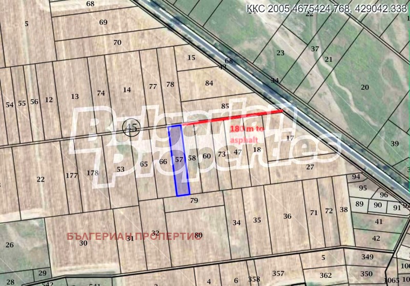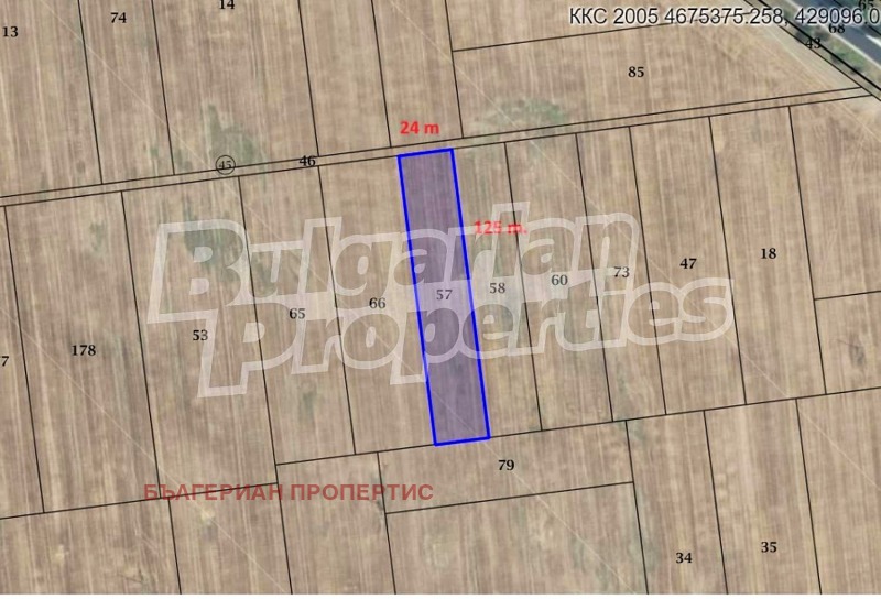 Парцелът е с размери 24 х 125 м. Намира се на около 180 м. от пътя Бенковски - Войсил.