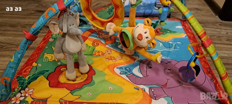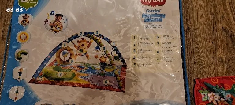 Tiny love Gemini monkey island- активна гимнастика, купена за 150лв,аз я предлагам за 65лв,като е ползвана малко,и е като нова. В оригиналната си опаковка.Музикална е и много интересна.Има 18 стимулиращи развитието дейности.Мека преносима маймунка с различни мелодии и светлини.Безопасно огледалце.Висящи играчки с различни функции- дрънкалка,вибрираща рибка,гризалки и перящо се килимче,на което също има различни неща,като свирка, шумолящи неща и др.В комплекта имаше и възглавничка,но тъй като използвахме друга,тази не я намирам ,но затова подарявам музикална играчка с приспивна мелодия, също мога да предложа и възглавничка за път. .