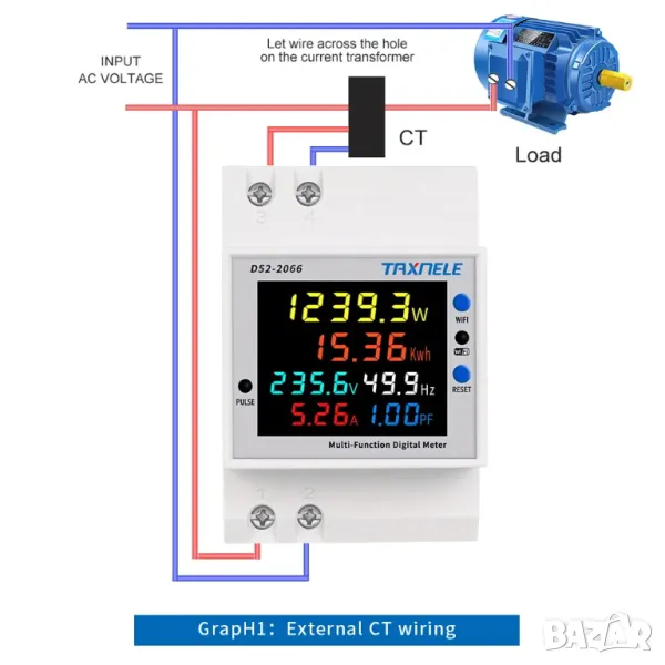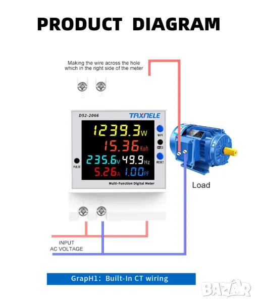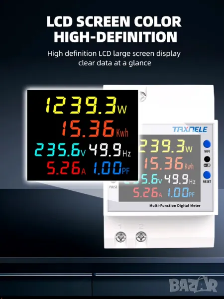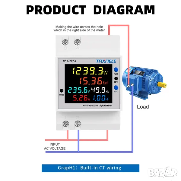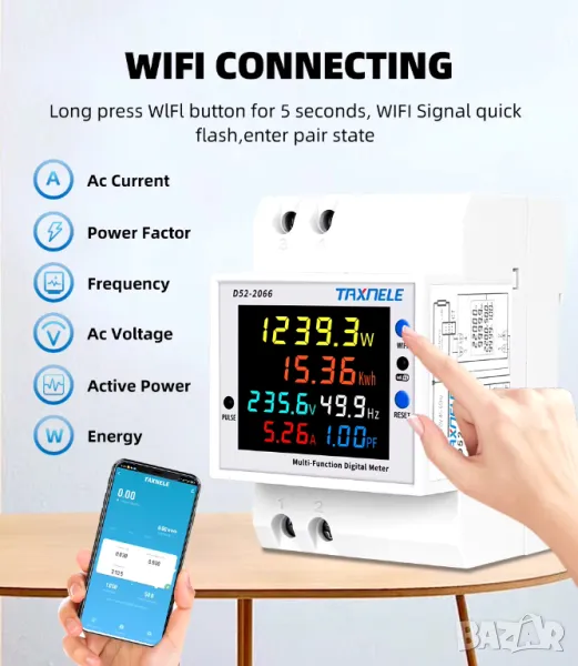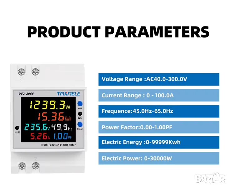 - Електрическа енергия: 0-99999kwh, резолюцията на дисплея на електрическата енергия е 0,01kwh при измерване на електрическата енергия между