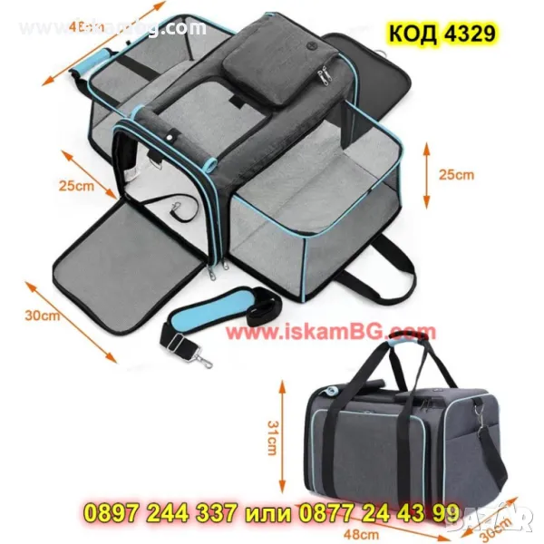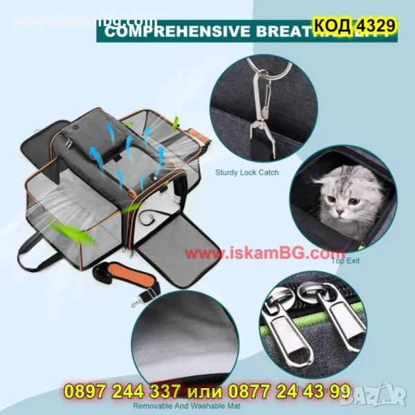 Подарете на своя любимец удобство, пространство и сигурност с тази многофункционална разтегателна чанта-сак, създадена специално за транспортиране на котки, малки кучета и други дребни животни. Идеална за пътувания с автомобил, влак или самолет, тази чанта е перфектен спътник във всяко приключение.