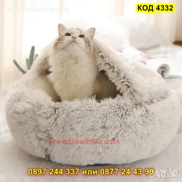 Подарете на своя домашен любимец усещане за топлина, защита и пълен релакс с това меко и пухкаво легло с качулка. Проектирано специално за котки и малки породи кучета, леглото наподобява гнездо и осигурява уютна, сигурна среда, която домашните любимци обожават!