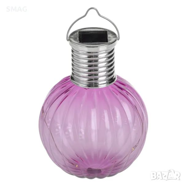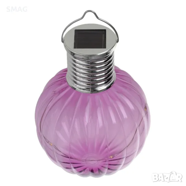 Соларна висяща лампа с цветна прозрачна външна част, акумулаторна батерия и ярък светодиод. Има ключ ON/OFF.