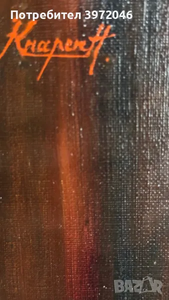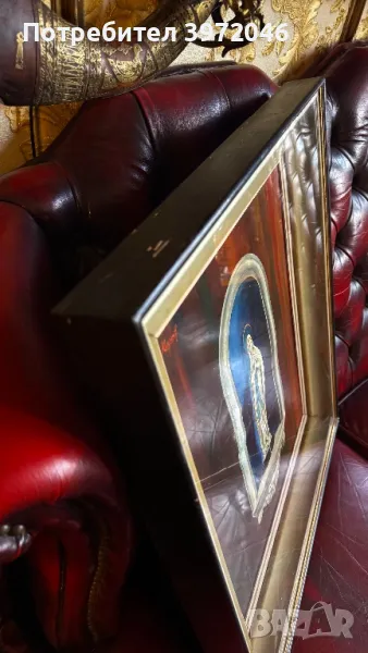 • Особености: Картината е поставена зад стъкло, което ѝ придава визуална дълбочина и я прави още по-внушителна. Вътрешната част на рамката е тапицирана с виненочервен плюш, придавайки ѝ едновременно топлина и благородство.
