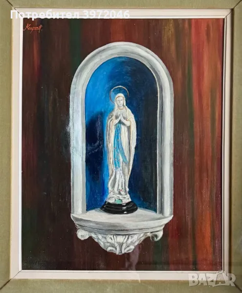 ⚜️В навечерието на Великден и точно на днешния светъл празник на Богородица, предлагам за продажба една особена и силно въздействаща религиозна картина – изобразяваща статуетка на Дева Мария, в типично католическо представяне. ⚜️Предложението идва неслучайно днес – с надеждата тази творба да намери нов дом, в който ще бъде оценена и ще носи благословия, закрила и вдъхновение.