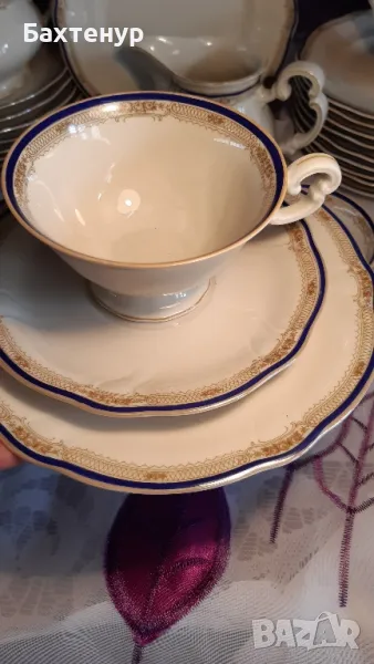 Paul Muller Selb HUTSCHENREUTHER Костен порцелан красив благороден кант Кобалт и позлата съкровище от 20 век Сервиз за кафе чай 1.бр/Латиера 12 см1бр/.Захарница 15 см11.бр/Чинии тор 20 см12.бр/Чаши 180 мл Цена 420лв