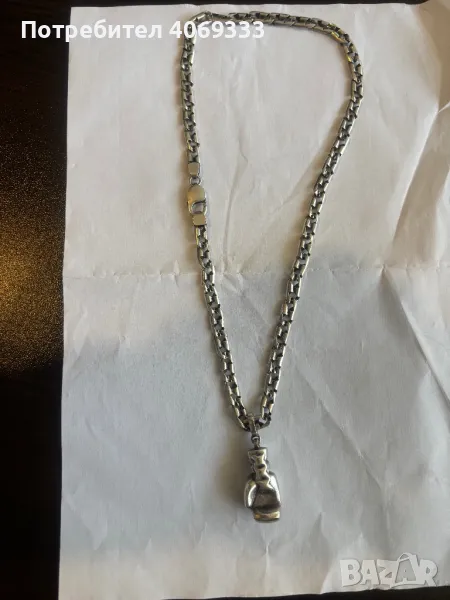 Сребърен плътен синджир с боксова ръкавица 67.62гр 925 → Обява 49909837