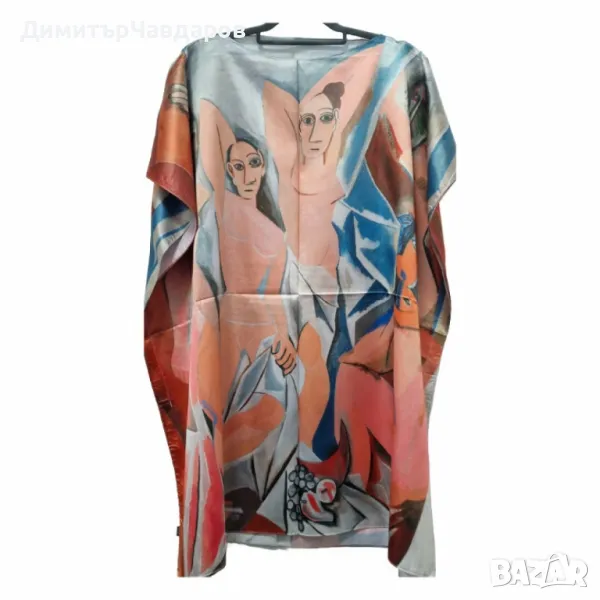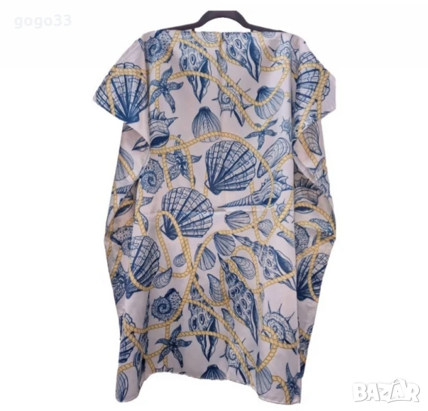 Лятна плажна туника от коприна, с артистични и морски десени