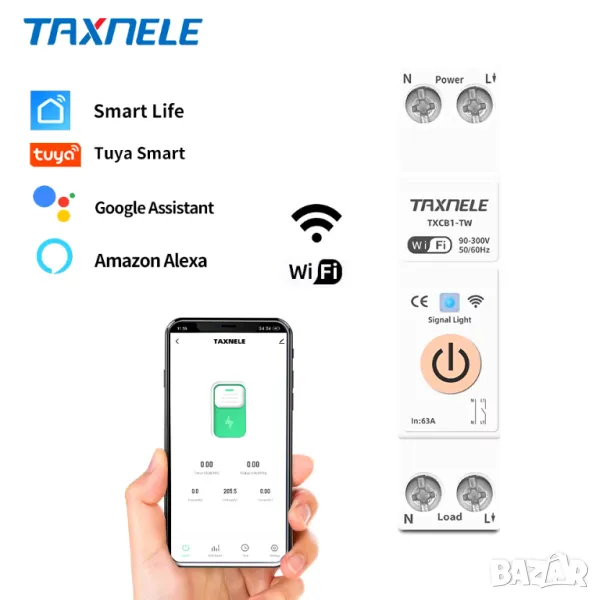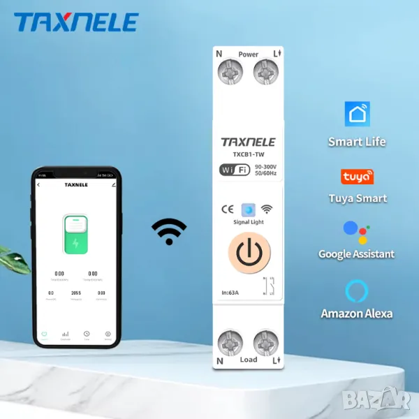 Многофункционален смарт WIFI електромер, прекъсвач, предпазител и таймер за монтаж към DIN шина 63А с опция за реален мониторинг на моментно, дневно, седмично и годишно потребление на електроенергия.