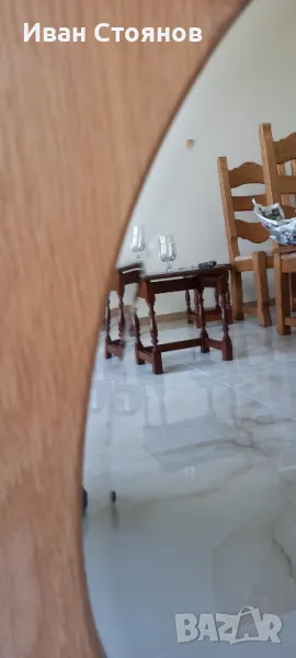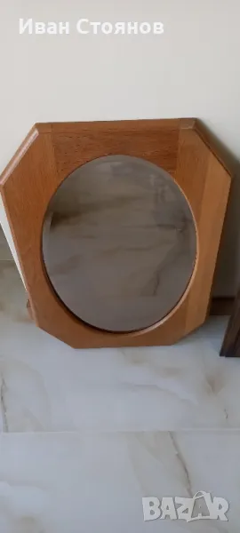 - Снимки 1, 2 и 3. Овално фасетитрано огледало с дъбова рамка.