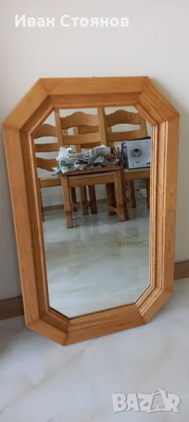 - Снимка 4. Огледало с осмоъгълна дъбова рамка в отлично състояние. Размери: 73 х 45 см.